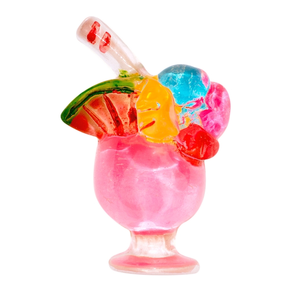 Made from sparkling clear resin detailed with cold enamel, small and perfect. In winter they will remind you of summer and in summer they are a apposite. You can wear them on your hat, lapel, t-shirt, bag, you can pin them just about anywhere. They look great, low cal. sugar free but not for drinking. Enjoy.