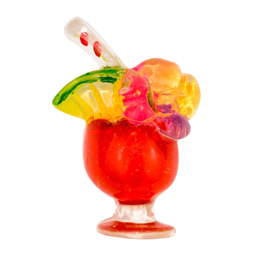 Made from sparkling clear resin detailed with cold enamel, small and perfect. In winter they will remind you of summer and in summer they are a apposite. You can wear them on your hat, lapel, t-shirt, bag, you can pin them just about anywhere. They look great, low cal. sugar free but not for drinking. Enjoy.