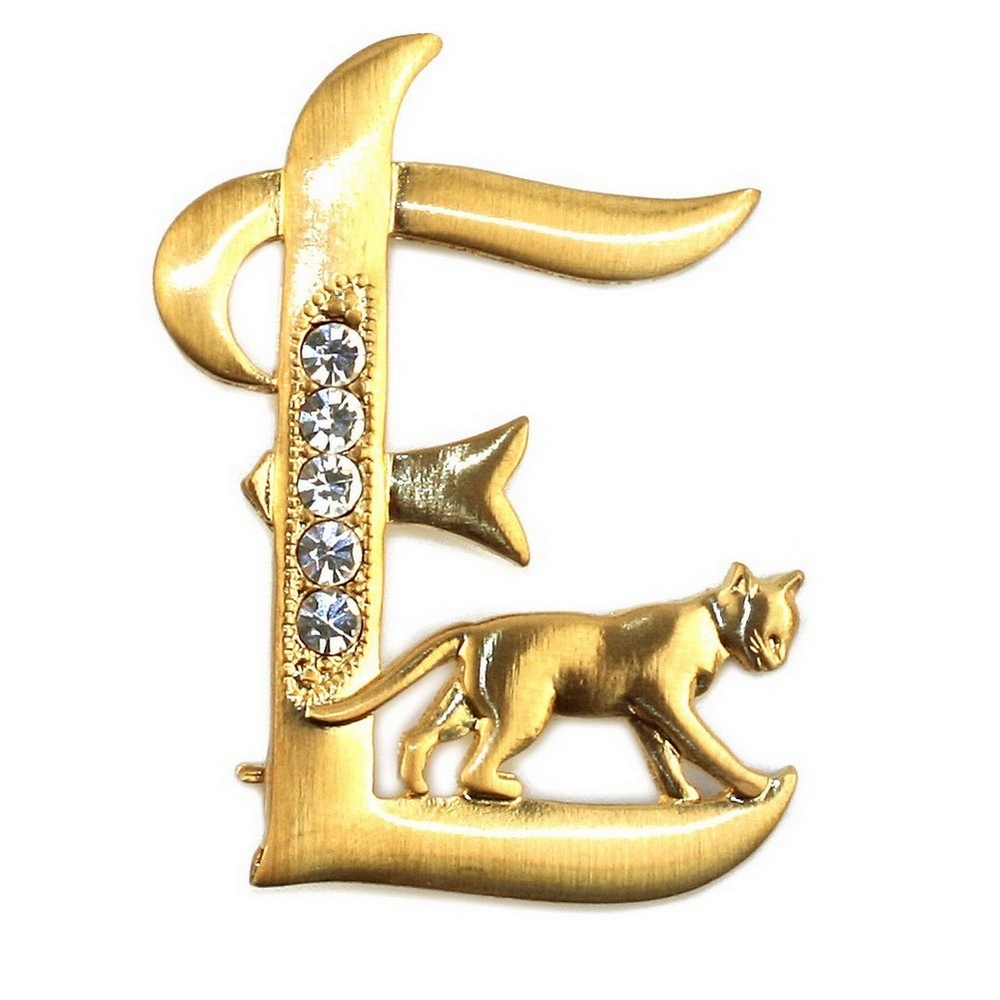 Brooch Initial ‘e’ Cat/stones Made With Pewter & Gold Plated