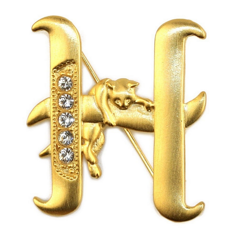 Brooch Initial ‘h’ Cat/stones Made With Pewter & Gold Plated