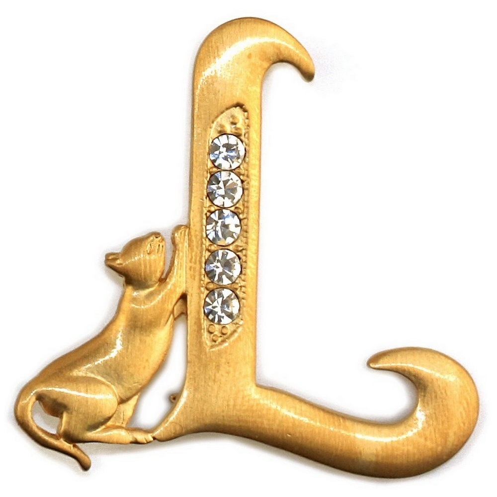 Brooch Initial ‘l’ Cat/stones Made With Pewter & Gold Plated