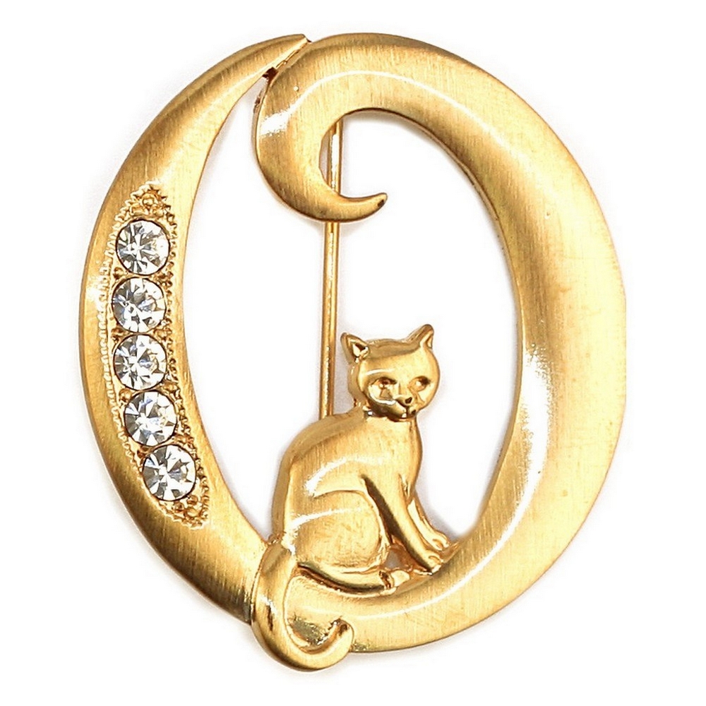 Brooch Initial ‘o’ Cat/stones Made With Pewter & Gold Plated