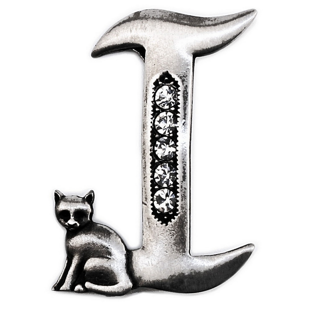 Brooch Initial ‘i’ Cat/stones Made With Pewter