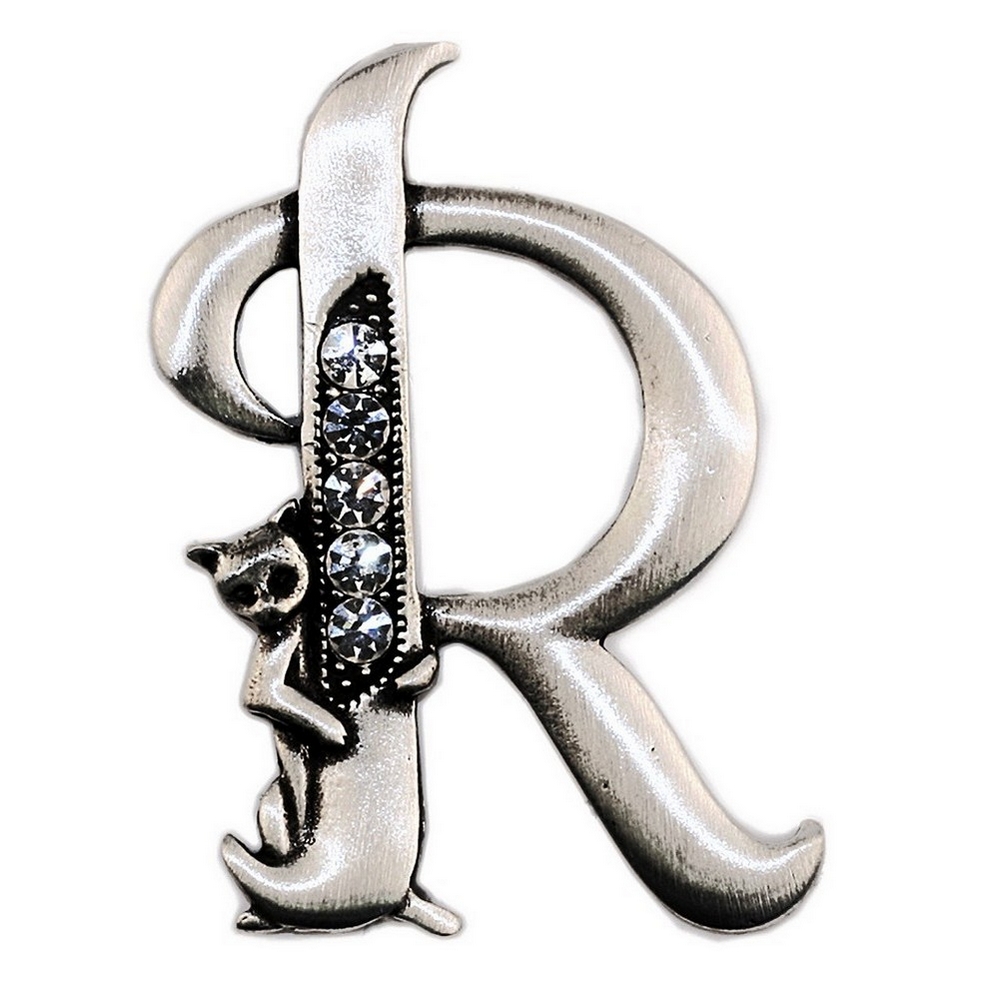 Brooch Initial ‘r’ Cat/stones Made With Pewter
