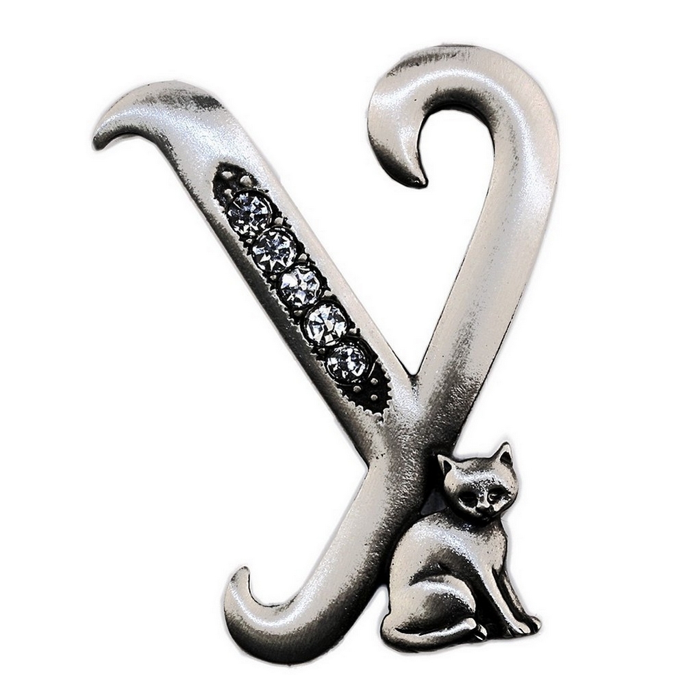 Brooch Initial ‘y’ Cat/stones Made With Pewter