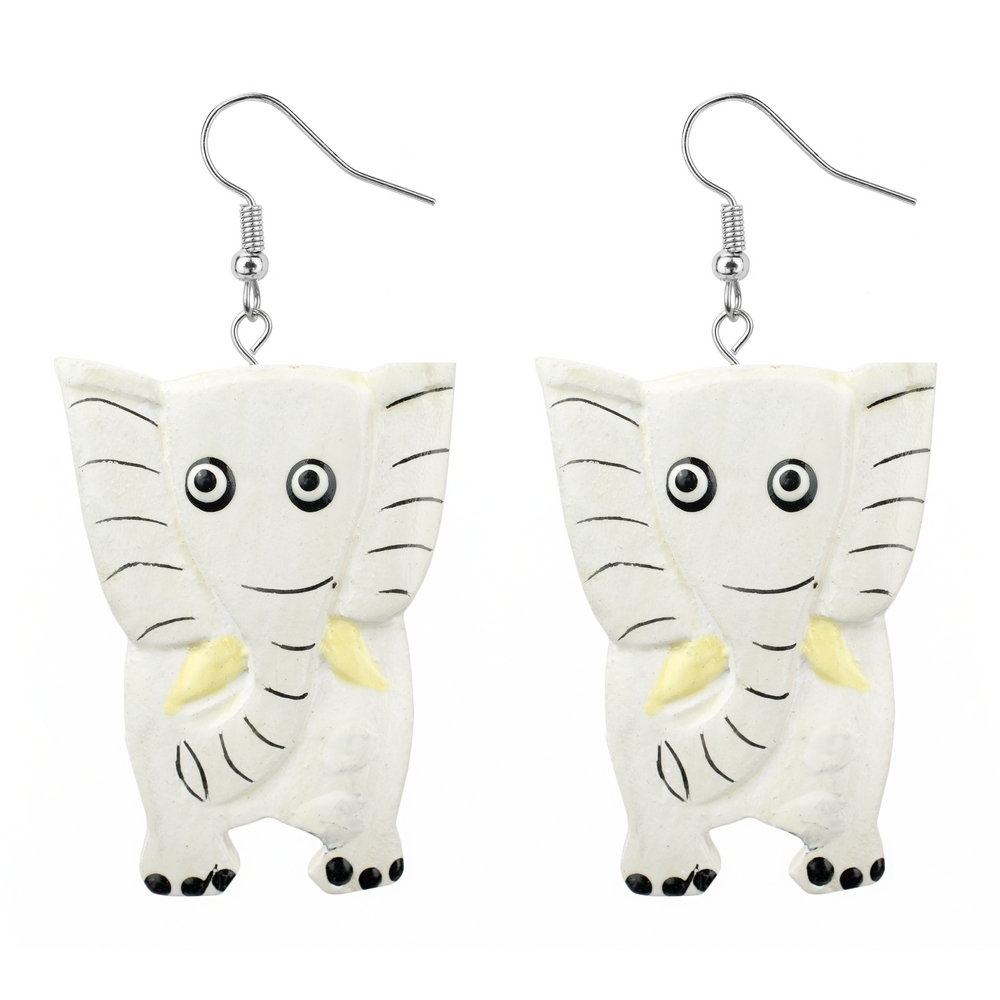 Drop Earring Painted Jolly Jumbo Elephant Made With Wood