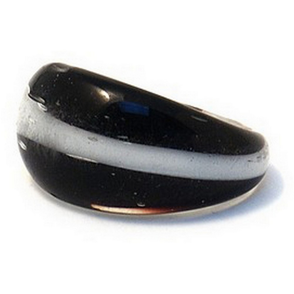 Crafted with meticulous care, each ring is a unique composition of millefiori glass, where tiny, intricate patterns are fused into a smooth, polished surface. The black and white palette, reminiscent of graphic novel panels or Op Art illusions, creates a striking visual dialogue. Holding it, one feels the cool, substantial weight of the glass, its surface a seamless canvas that invites the eye to explore its embedded wonders.