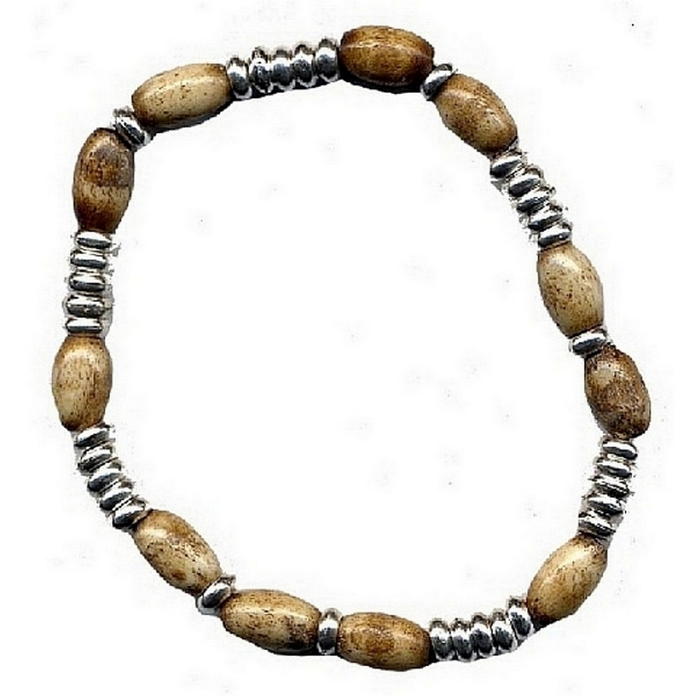 Bracelet Natural Oval Silver Disc Made With Bone
