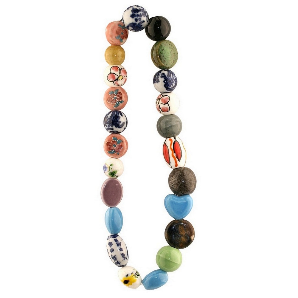 Bead string necklace ceramic random bead art mix multi-coloured