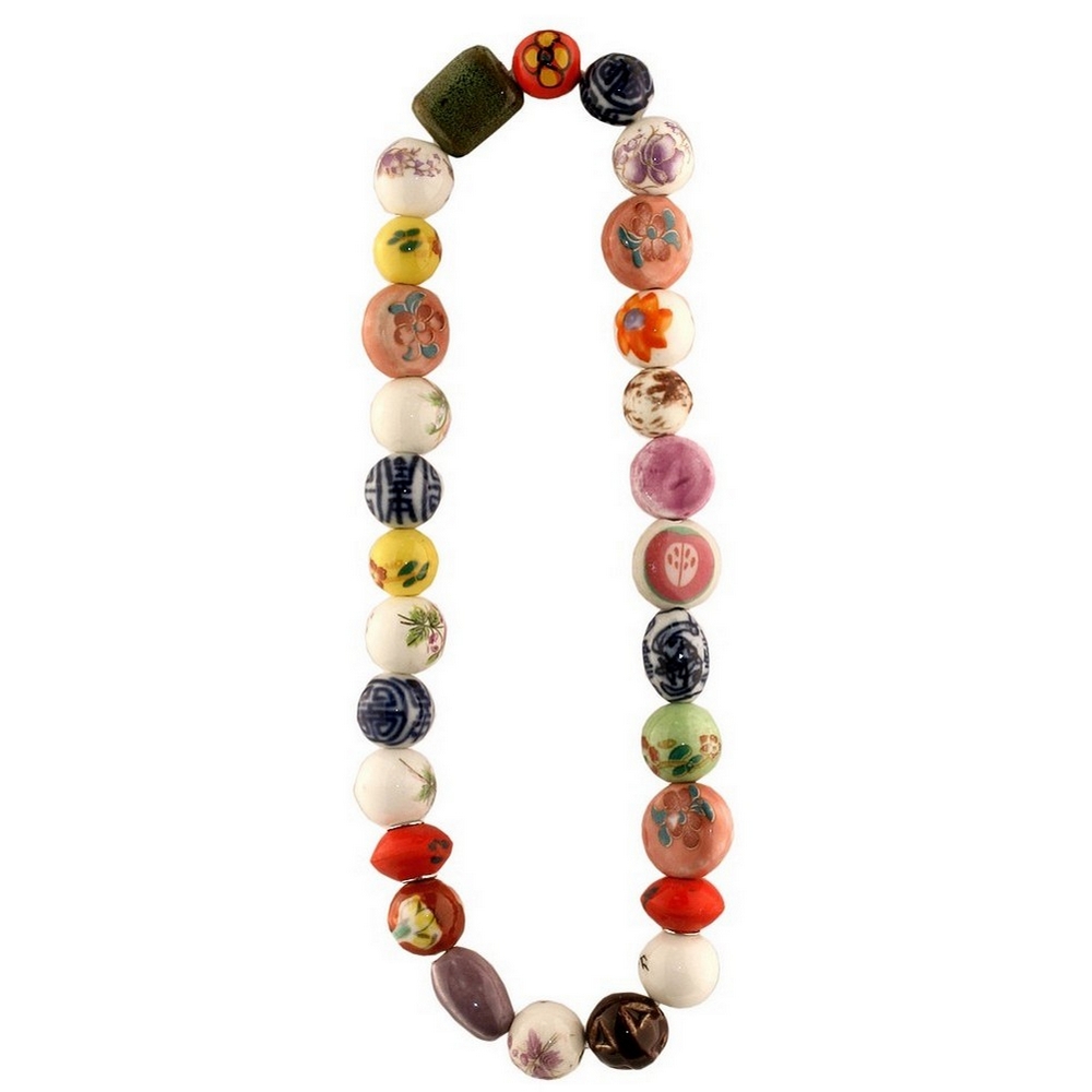 Bead string necklace ceramic random bead art mix multi-coloured