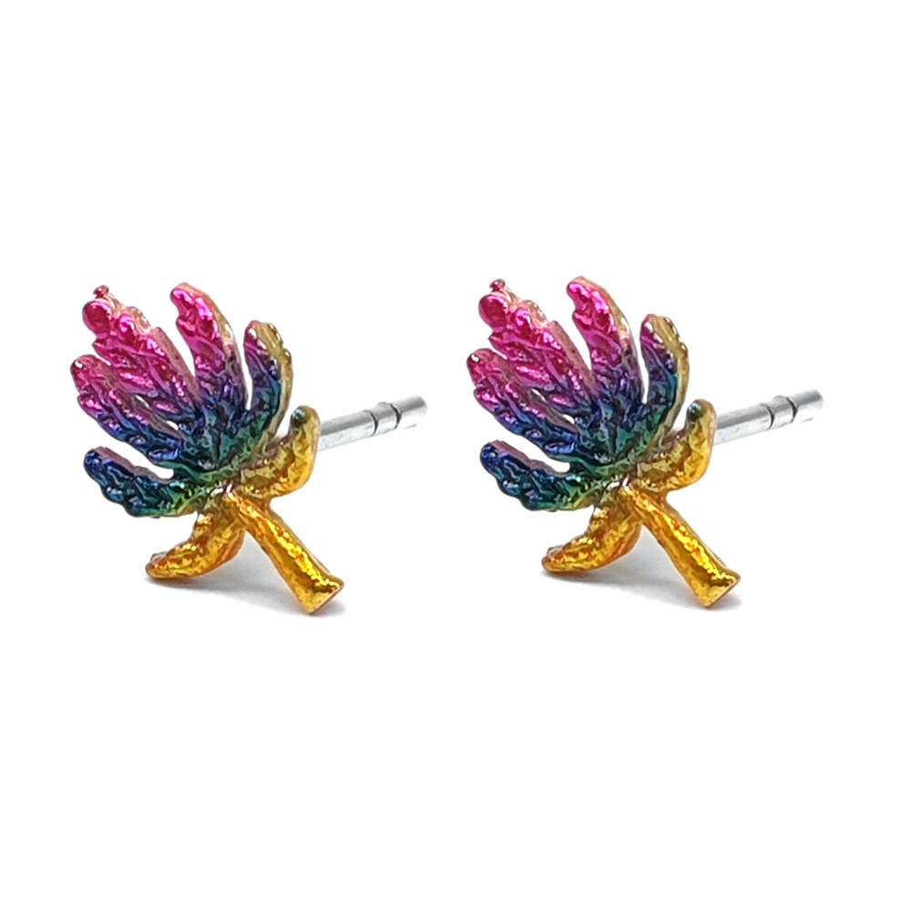 Stud Earring Canabis Leaf Painted Made With 925 Silver