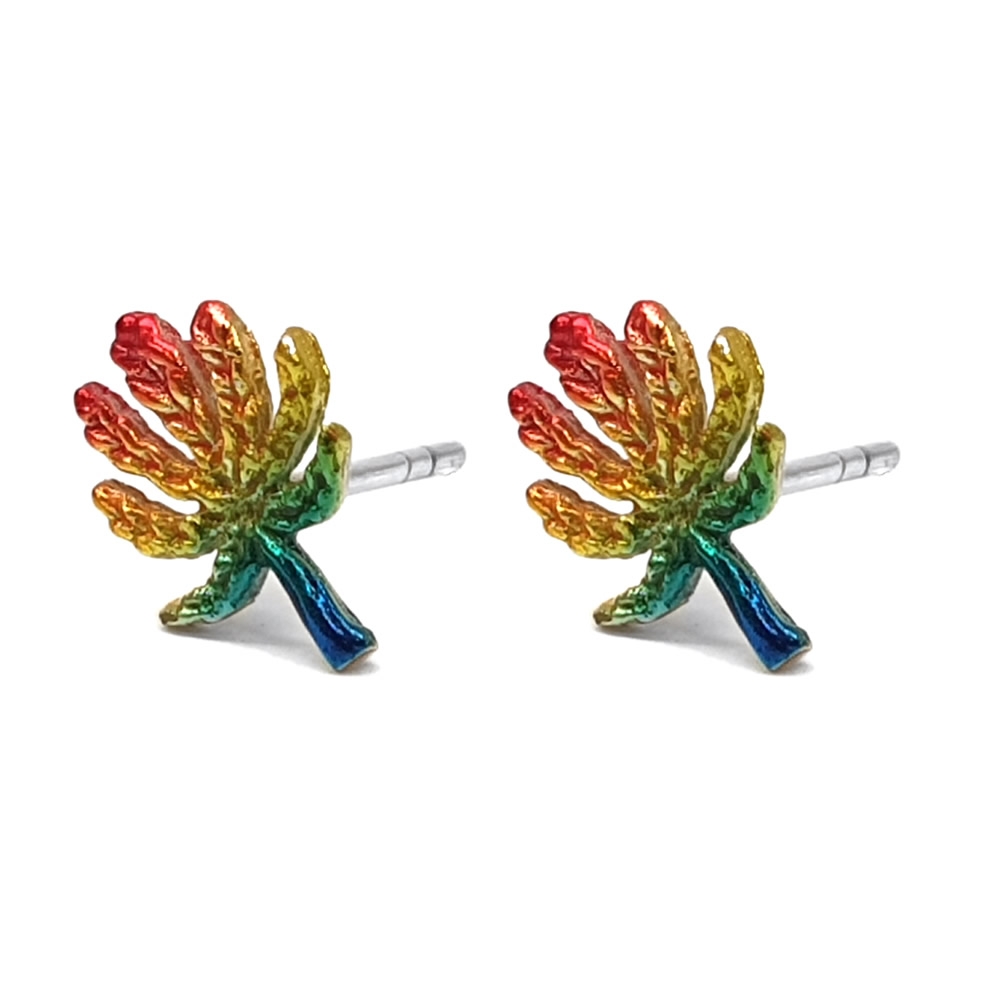 Stud Earring Canabis Leaf Painted Made With 925 Silver
