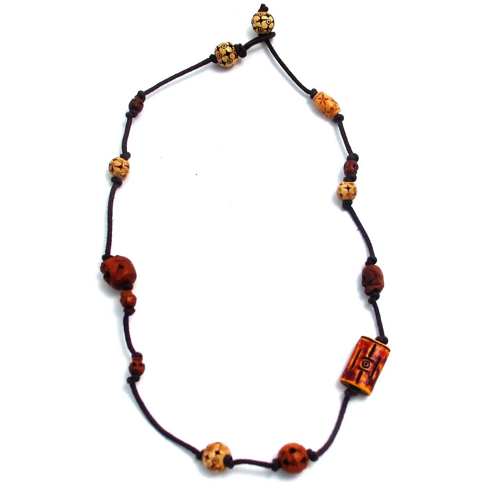 Choker Necklace Bead With Skulls Made With Bone & Wood