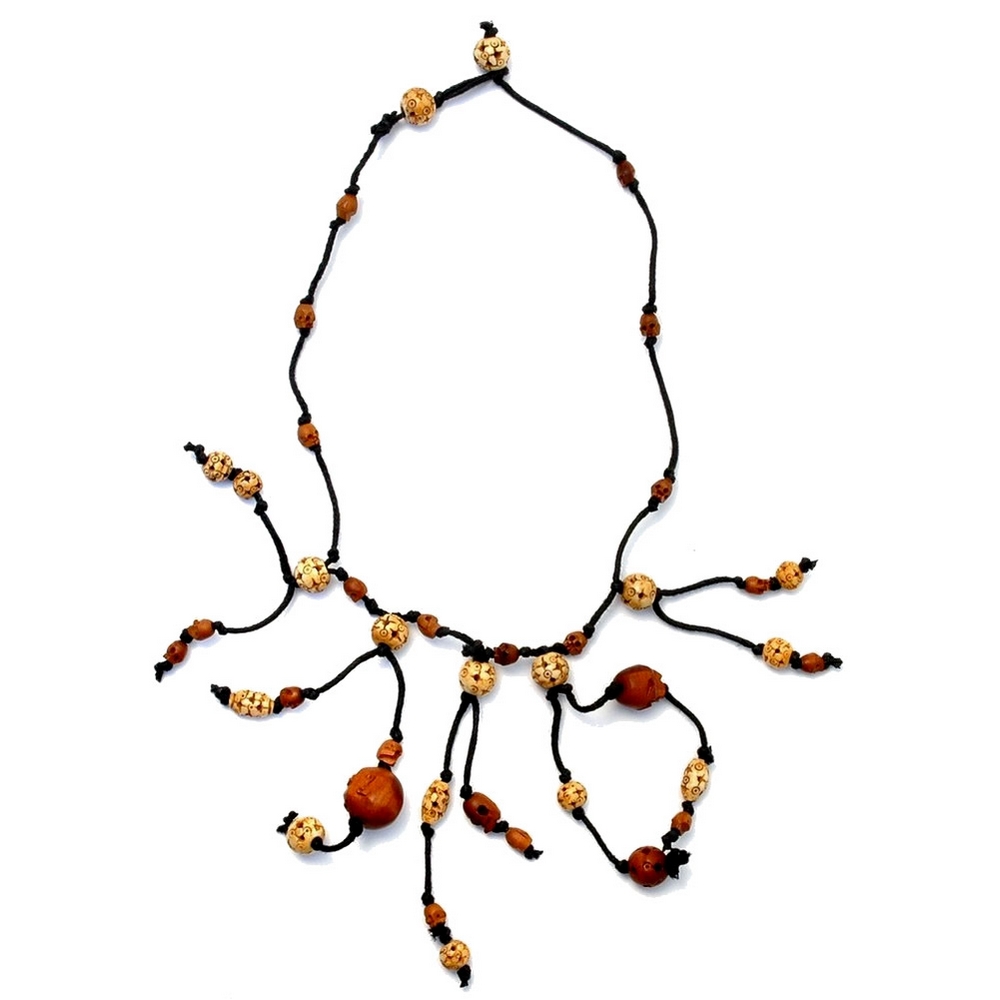 Choker Necklace Fringe Bead With Skulls Made With Bone & Wood