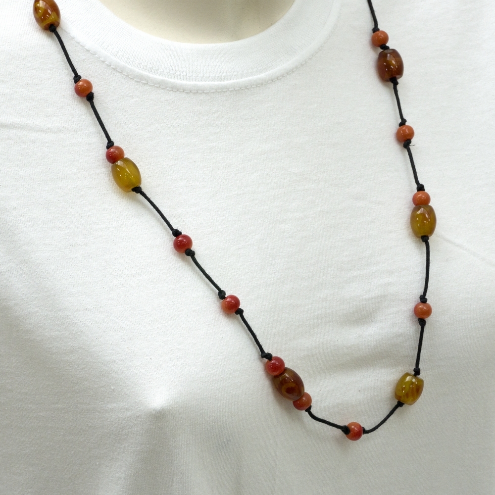 Necklace Amber Beads Hemp String Made With Stone