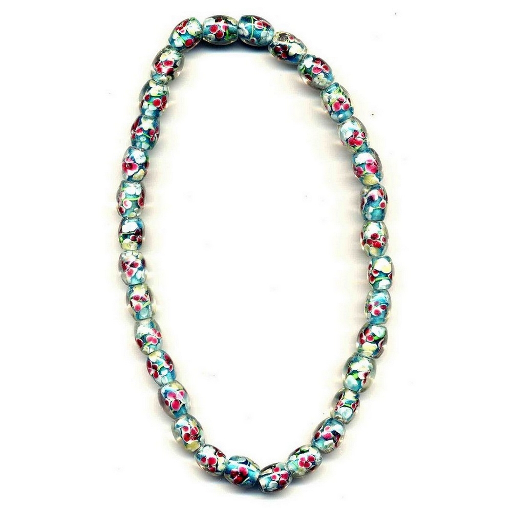 Necklace Flower Turq Oval Made With Glass