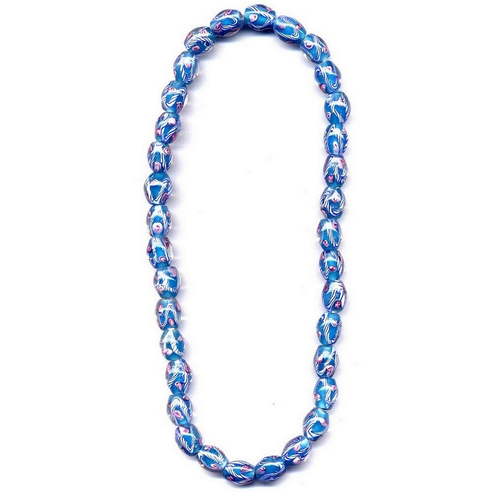 Necklace Flower Blue Stripe Oval Made With Glass