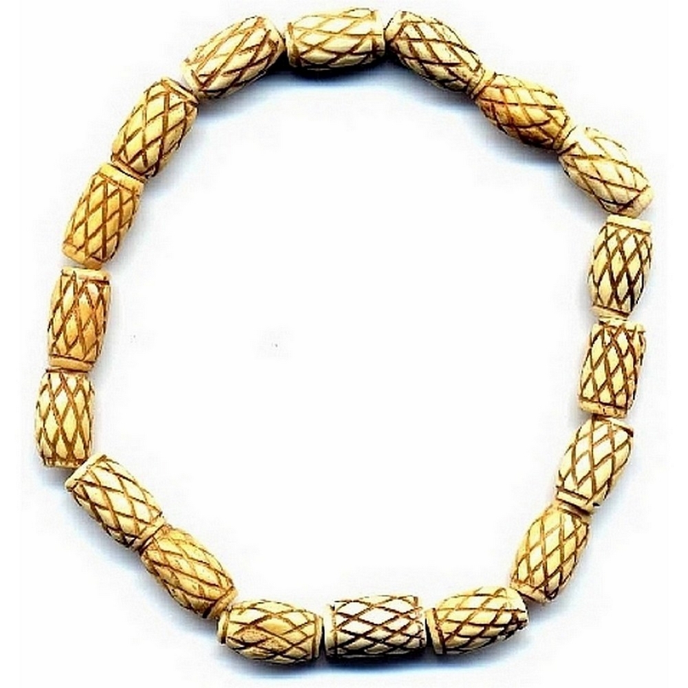 Bracelet Hand Carved Criss Cross Barrel Made With Bone