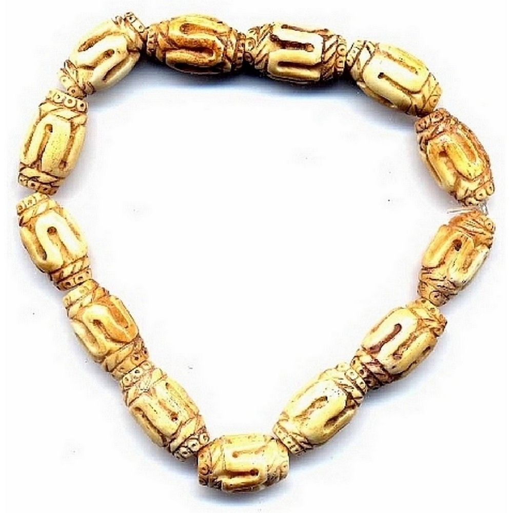 Bracelet Hand Carved Squiggle Barrel Made With Bone