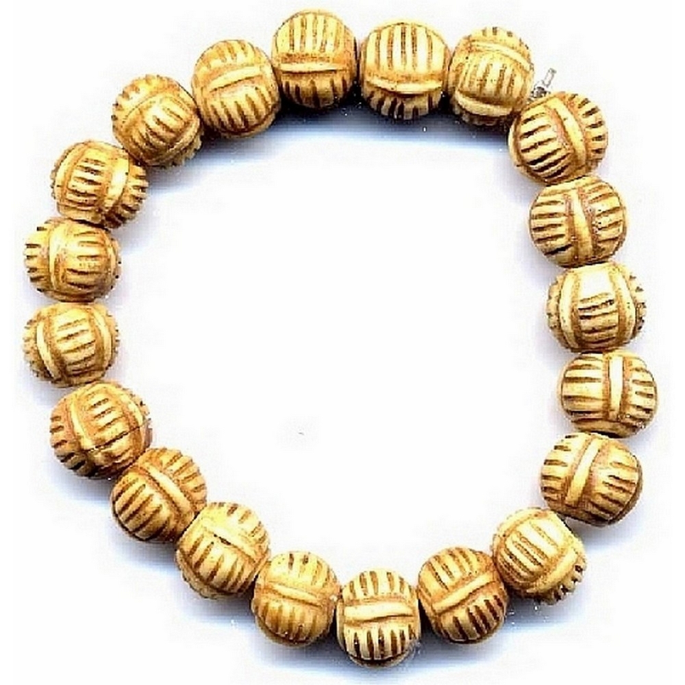 Bracelet Hand Carved Stripe Ball Made With Bone