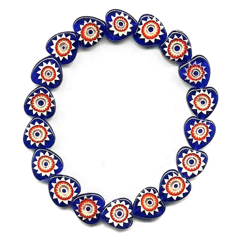 Bracelet Millefiori Blue/red Heart Shape Made With Glass