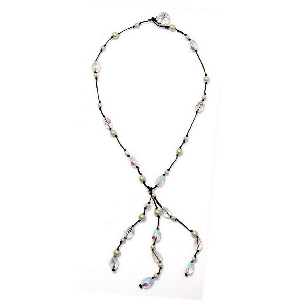 Necklace Teardrop 3 Row Drop Made With Glass & Pearl