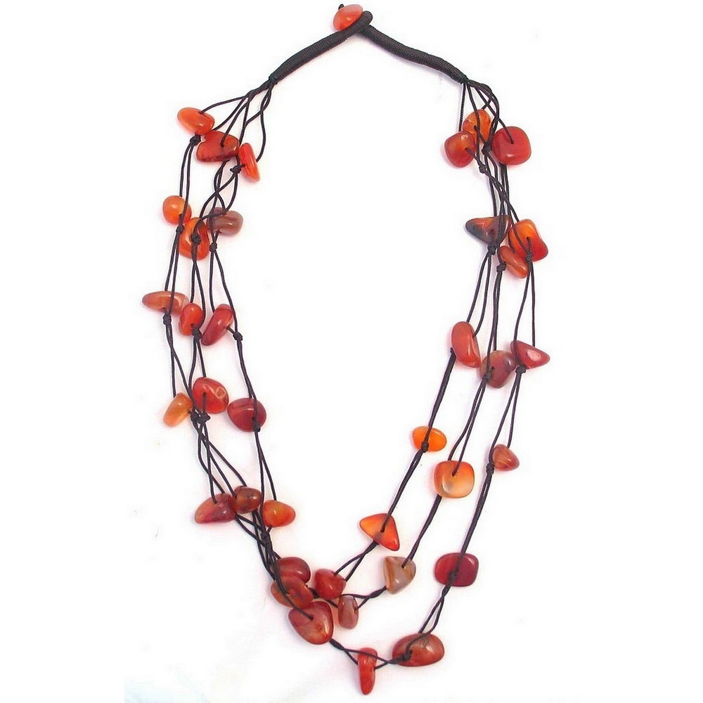 Bead String Necklace Nugget 3 Strand Red Brown Made With Gem Stone