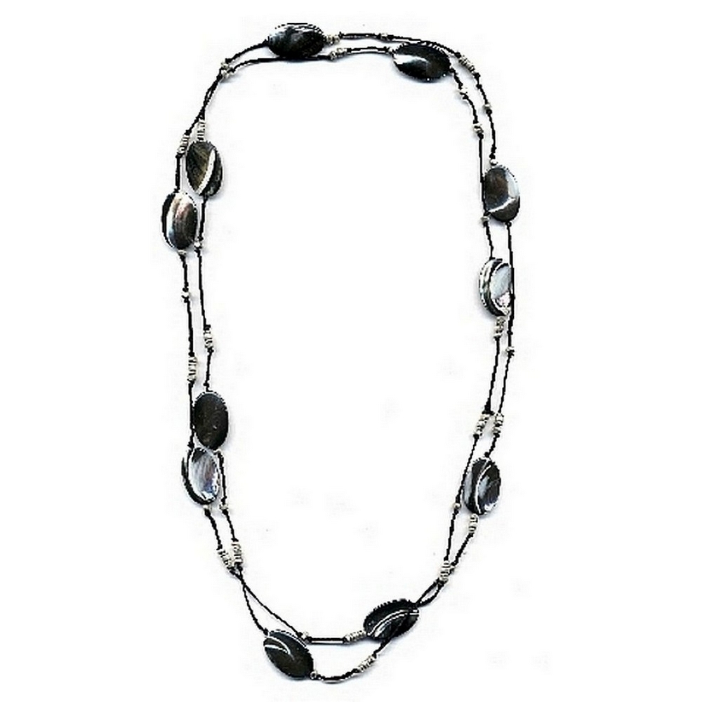 Necklace Black Oval And Silver Ball Long 110cm Made With Mother Of Pearl