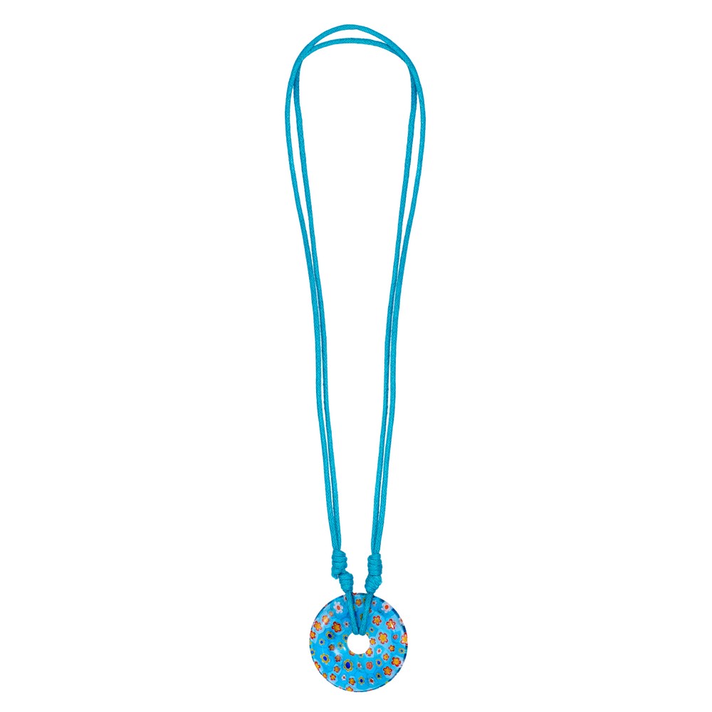 Necklace with a pendant millefiori glass 35mm donut turquoise turquoise