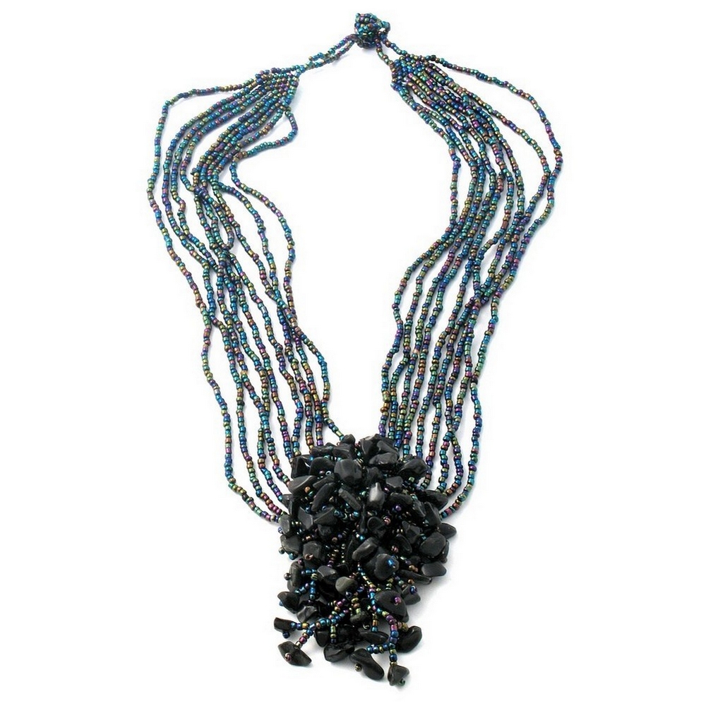 Necklace 9 Strand With Stone Cluster Made With Glass