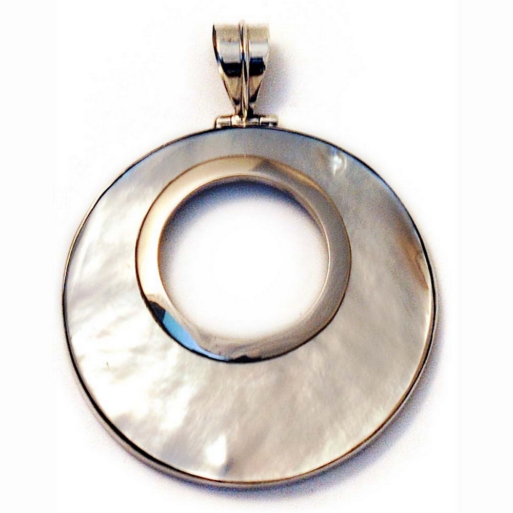 Necklace With A Pendant Round+oval With Cut Out 45mm Made With 925 Silver & Shell