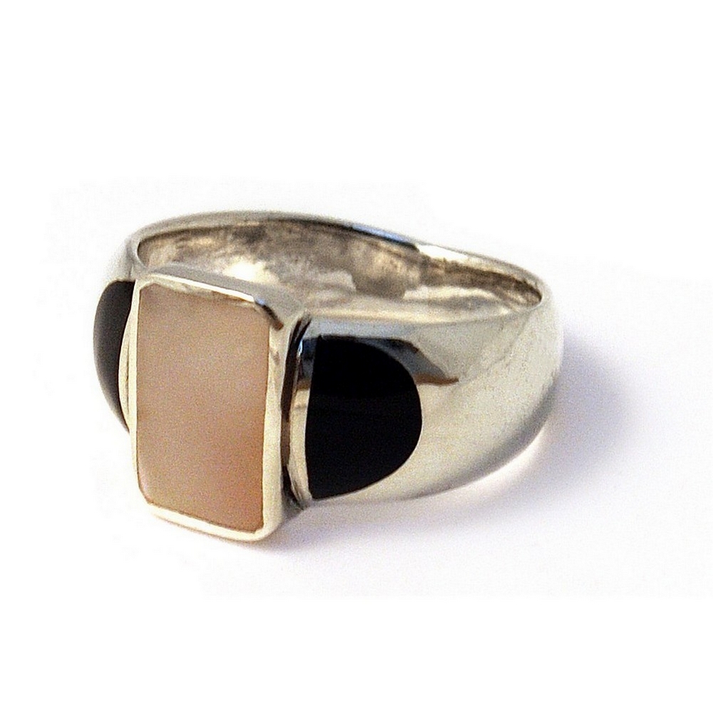 Ring Blk/w Rectangular Front Made With 925 Silver & Shell