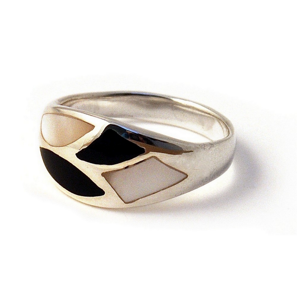 Ring Blk/w 4 Shapes Made With 925 Silver & Shell