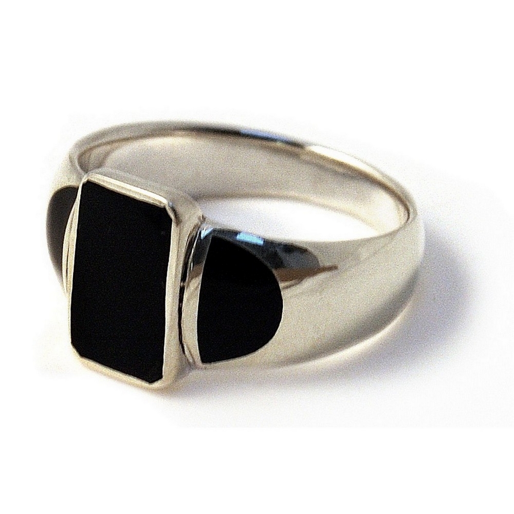 Ring Blk Rectangular Front Made With 925 Silver & Shell