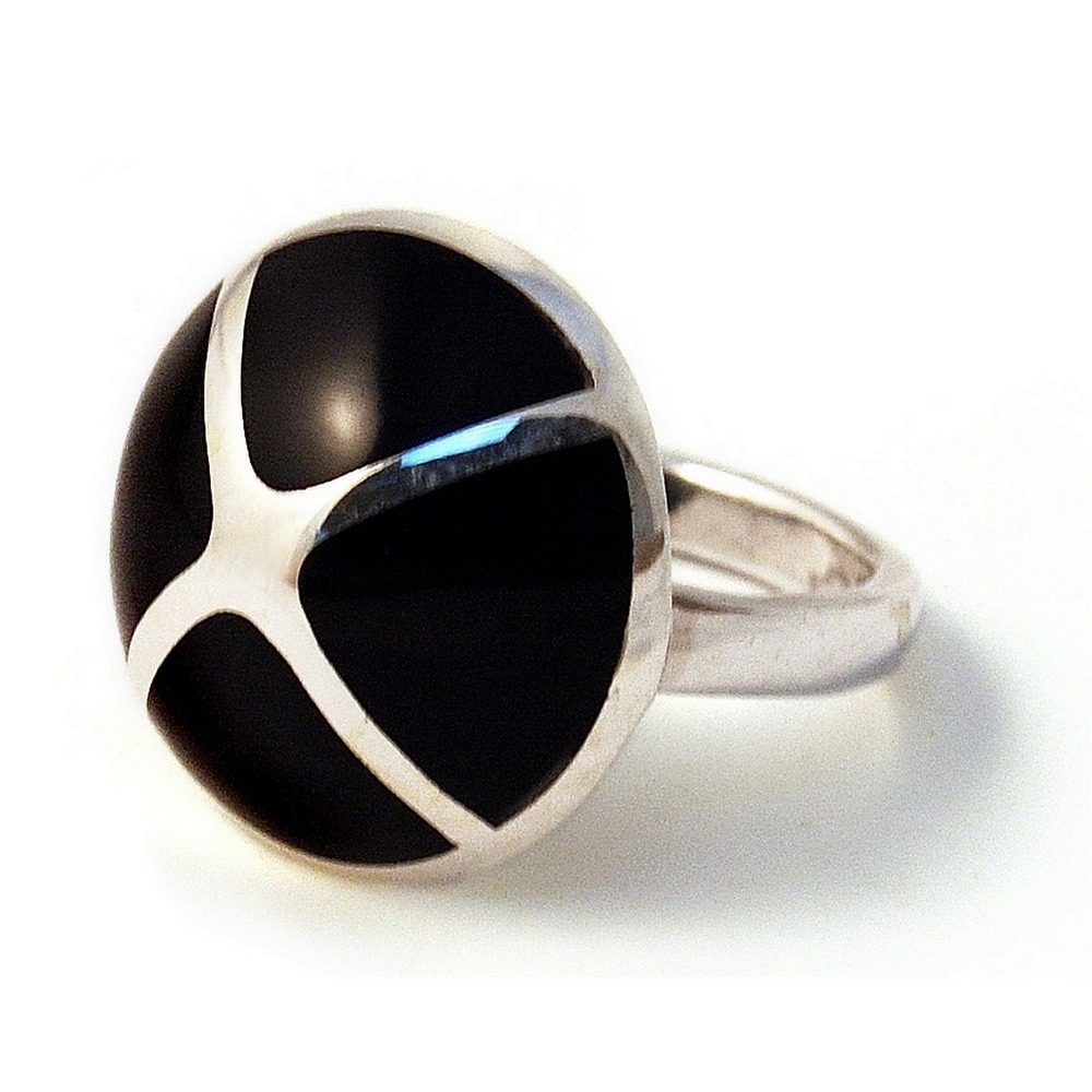 Ring Blk 4 Triangle Domed Front Made With 925 Silver & Shell
