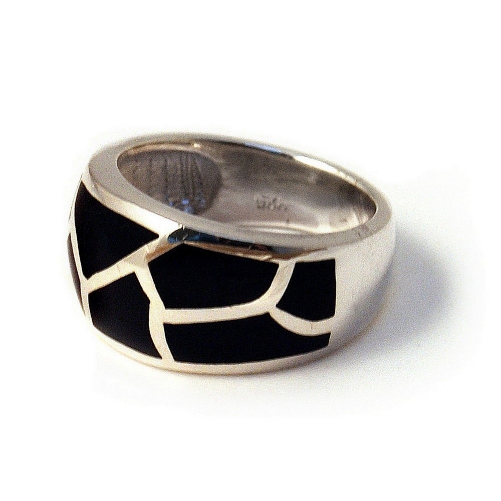 Ring Blk 2 Row Chips Made With 925 Silver & Shell