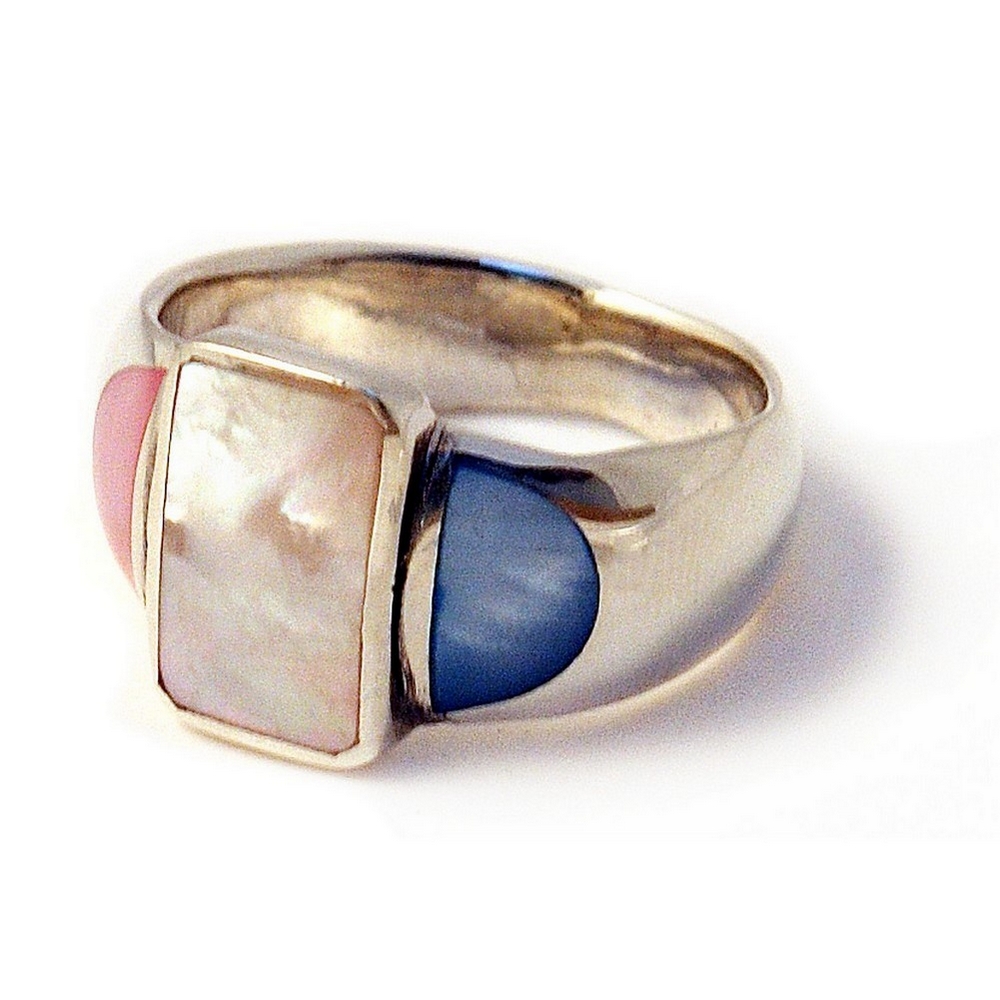 Ring Multi Rectangular Front Made With 925 Silver & Shell