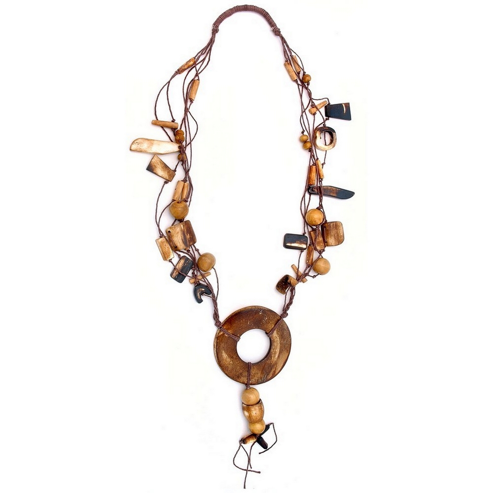 Necklace 5 Strand Brown 90mm Cut Out Disc Made With Bone