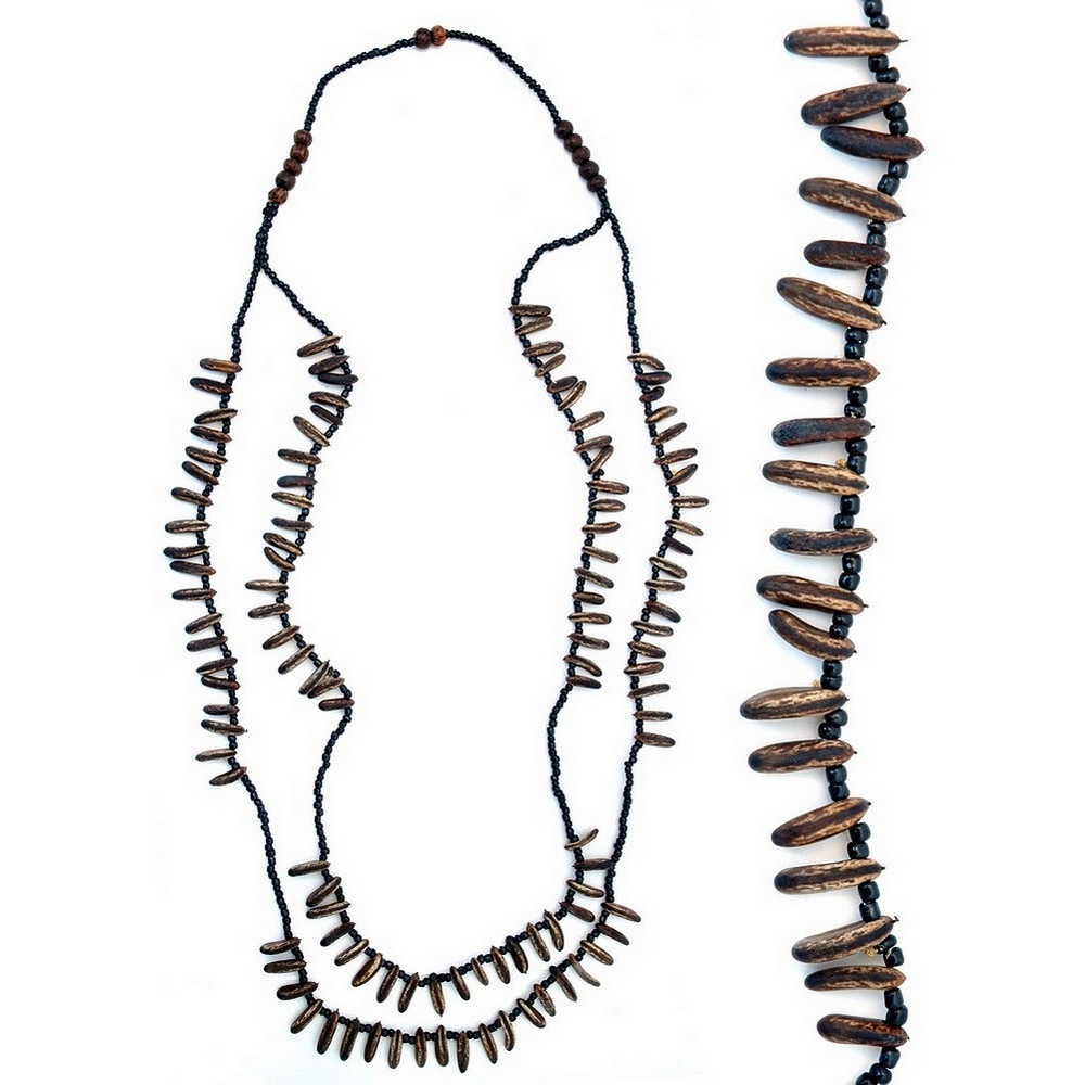 Long Necklace 2 Strand Seed & Blk Bead 120cm Made With Wood