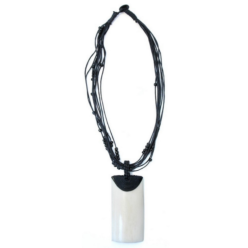 Necklace White 80x30mm 9 Strand Made With Horn & Cord