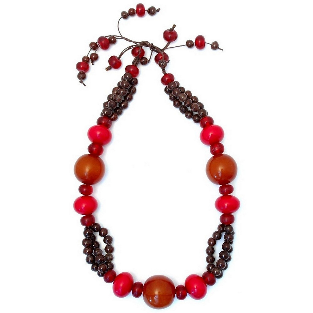 Long Necklace 3 Row 10mm Bead Red/brown 150cm Made With Glass & Resin