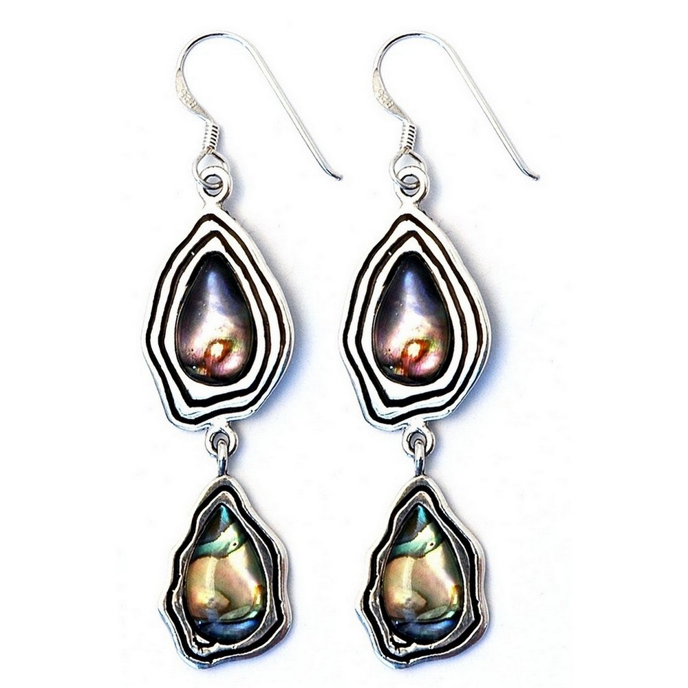 Drop Earring 2 Teardrop Made With 925 Silver & Paua Shell