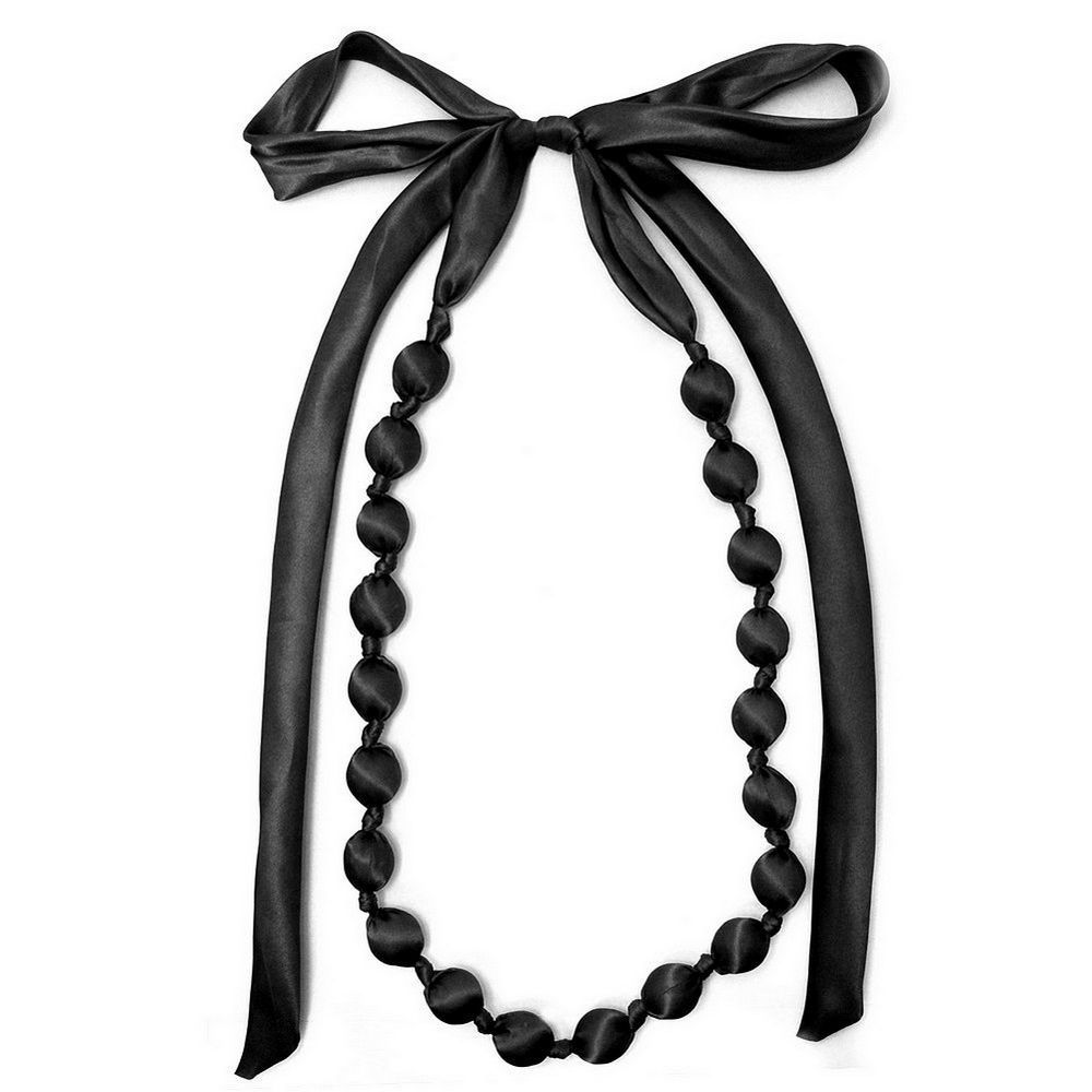 Long Necklace Covered Beads 20x20mm Black Made With Satin