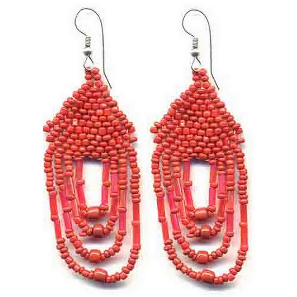 Drop Earring 4 Loop Drop Red Made With Glass & Bead