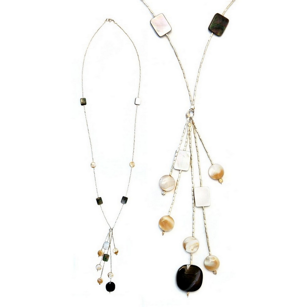 Necklace Silver Bead Tassel Made With Mother Of Pearl & 925 Silver