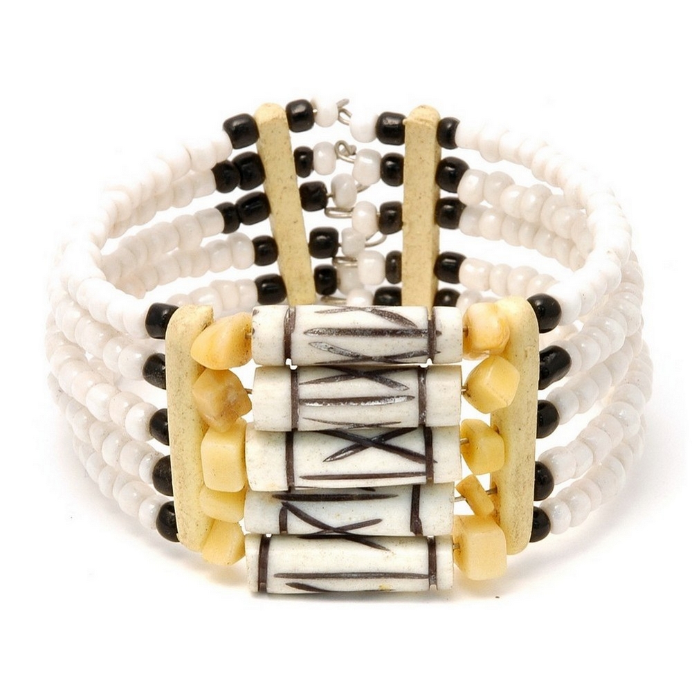 Bracelet 5 Row Bone Centre Antique White Made With Glass