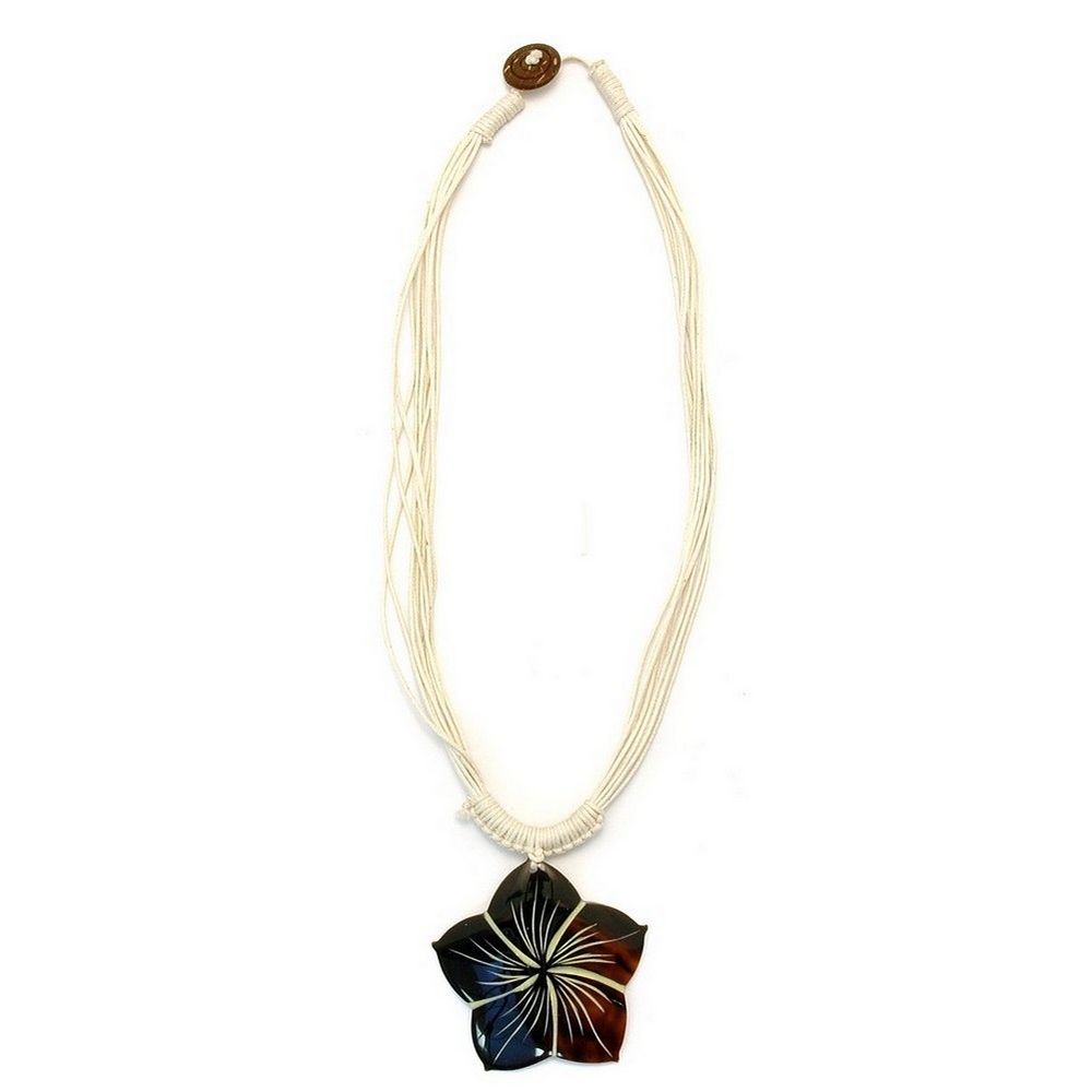 Necklace With A Pendant Brown Flower Natural Cord Made With Shell