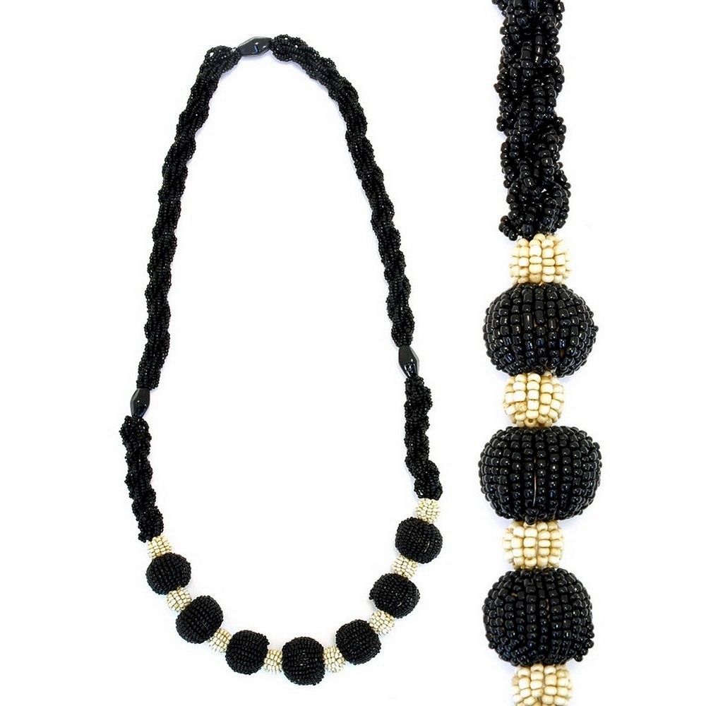Necklace Black & Antique White 72 Cm Made With Glass & Bead