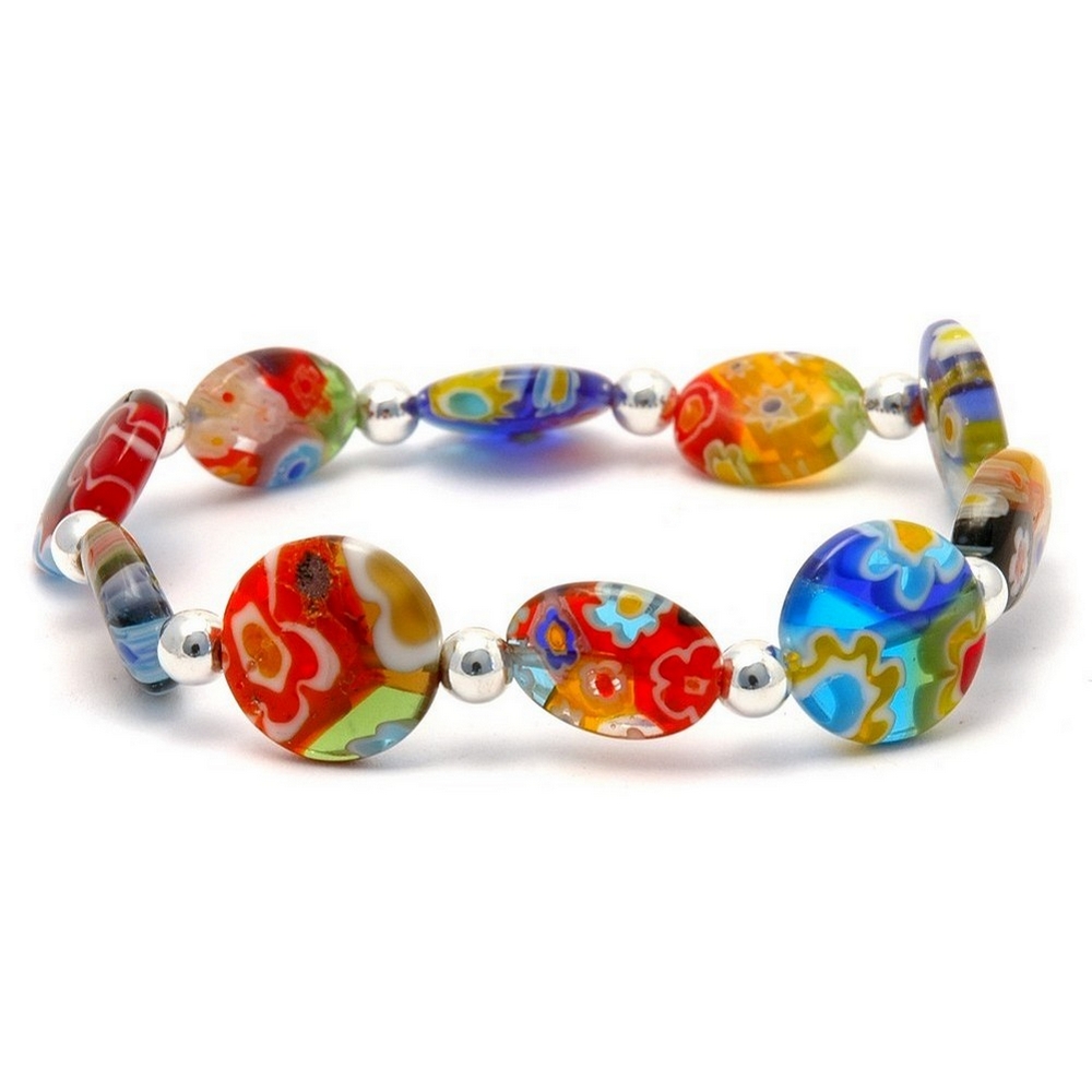 Bracelet Plain Silver Bead Made With Millefiori Glass & Glass