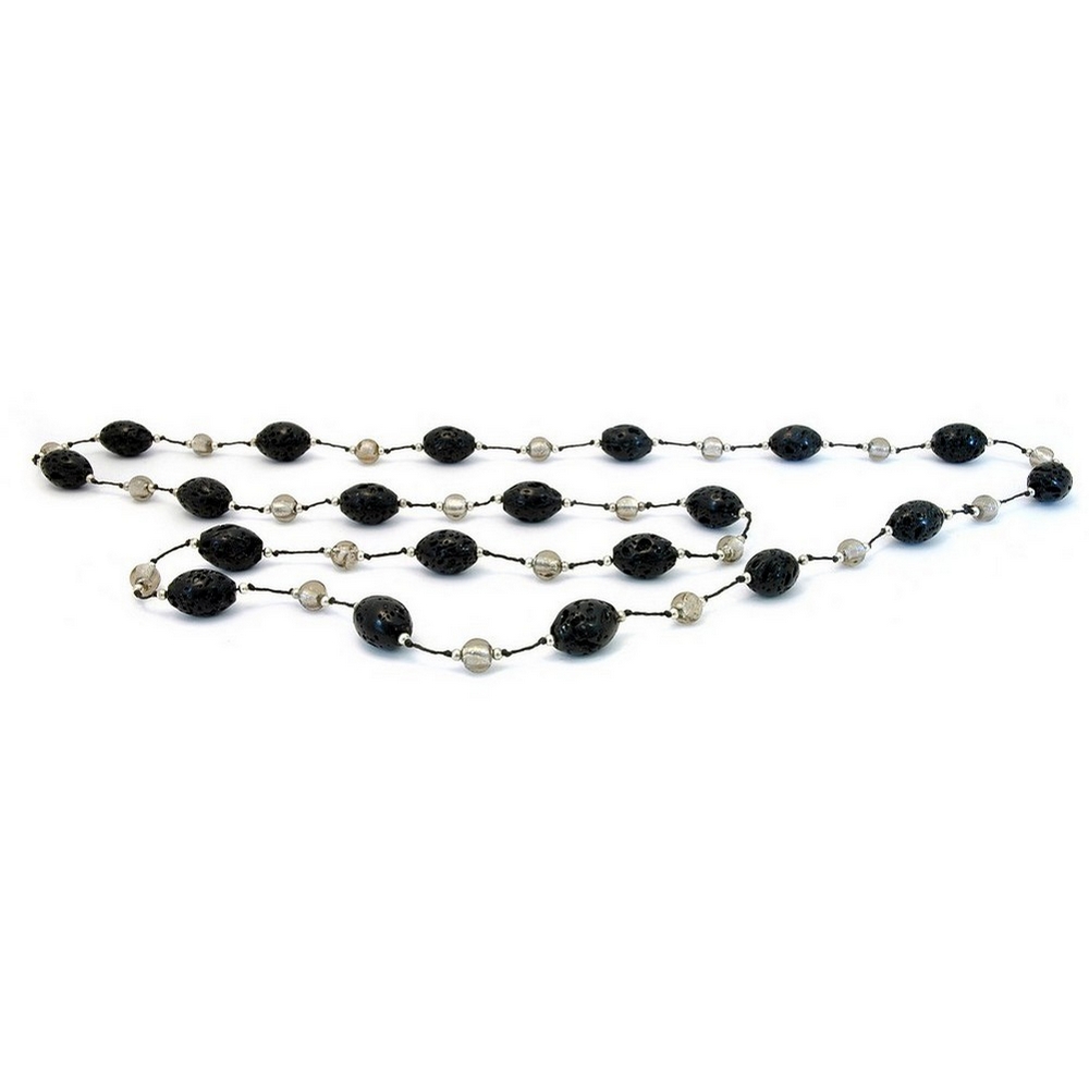 Long Necklace Volcano Bead Ovoid& Silver Plate Made With Stone